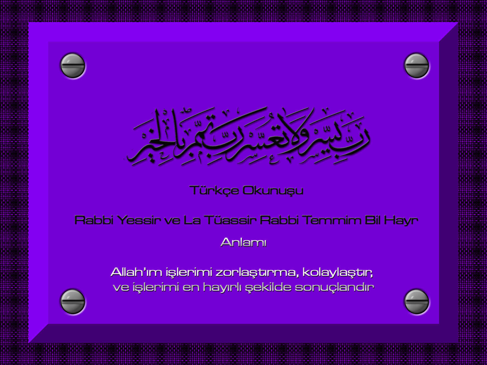 Allah’ım işlerimi zorlaştırma, kolaylaştır, ve işlerimi en hayırlı şekilde sonuçlandır.” (Amiyn)